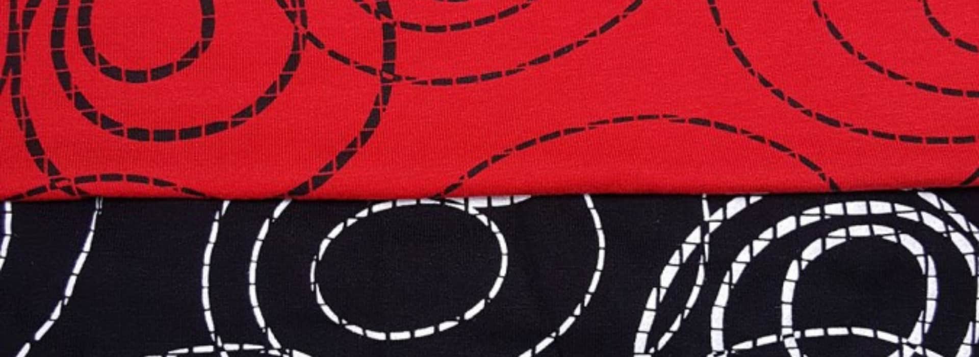 Uvedené fotografie zobrazují potisk na úpletu (viskózový single).